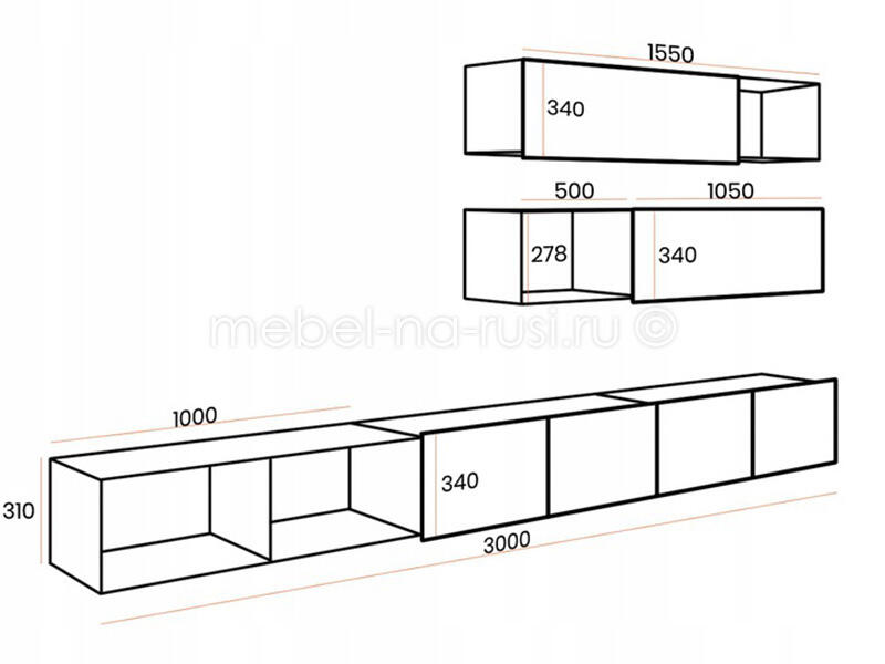1550х340х300 мм